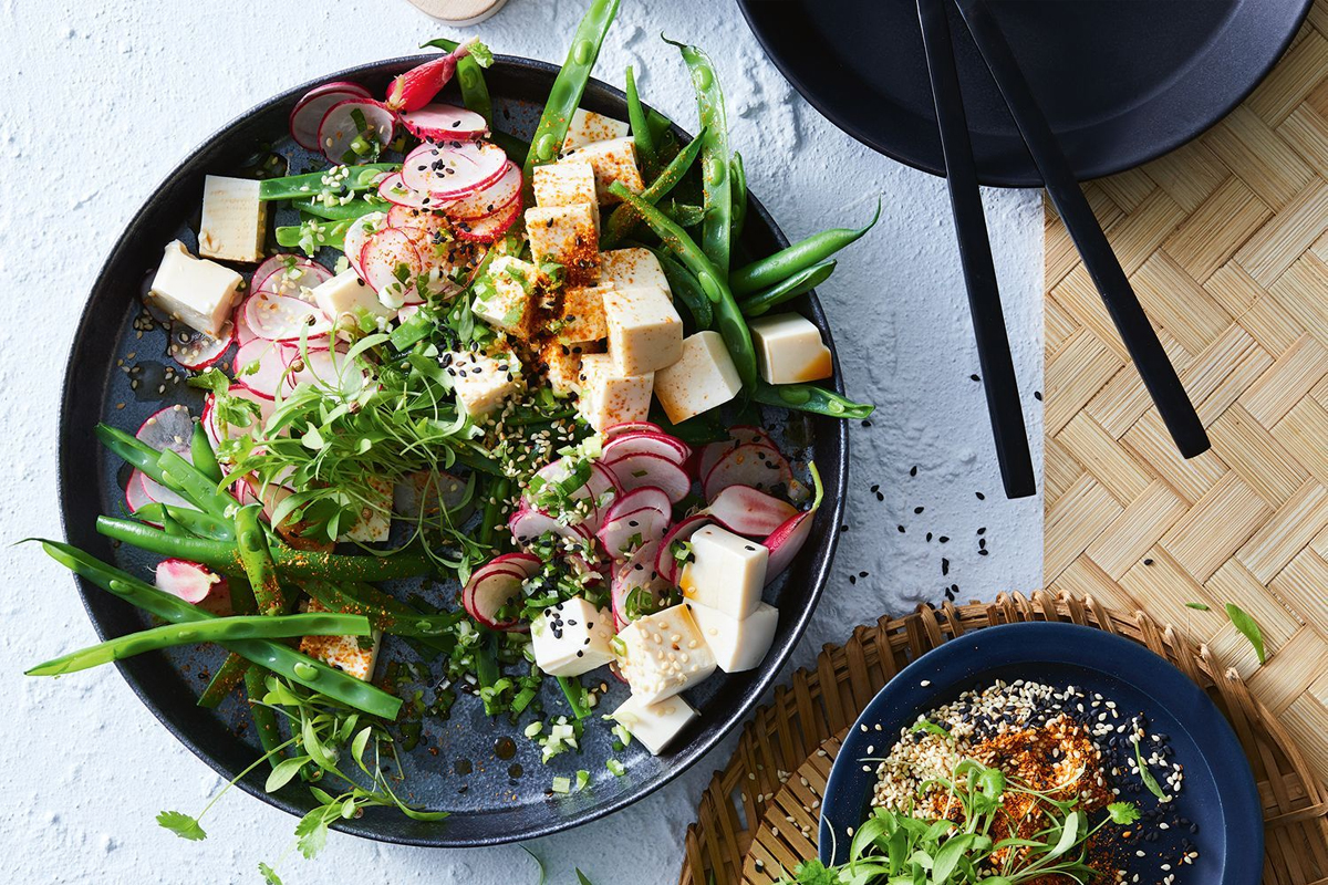 3. Sałatka z tofu i zielonej fasolki z sosem