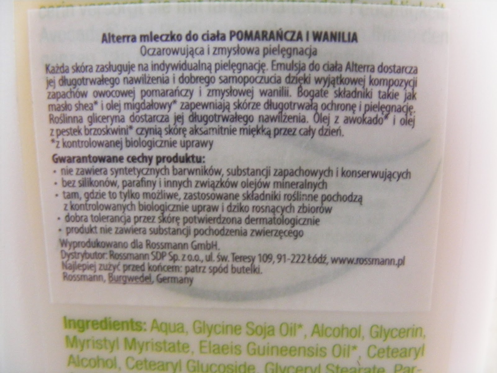 Alterra mleczko do ciała Pomarańcza i wanilia