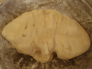 Stolnicę każdorazowo posypujemy mąką, żeby ciasto nam się do niej nie przyklejało. Tak samo każdorazowo trzeba smarować wałek. Kładziemy trochę ciasta na stolnicę i wałkujemy. Najlepiej nie rozwałkowywać bardzo cienko. Dobrze żeby ciasto miało ze 2,5mm grubości. Wtedy ciasteczka nie będą nam się przypalać w piekarniku :)