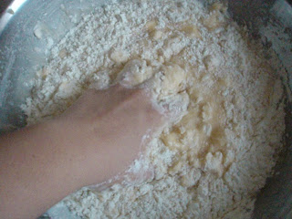 Musimy dokładnie wygnieść wszystkie grudki z margaryny i smalcu, żeby później nie mieć tłustych niespodzianek w ciasteczkach :) Trochę musimy się nagnieść niestety :P To bardziej męska robota, w której pomagał mi mój luby :)