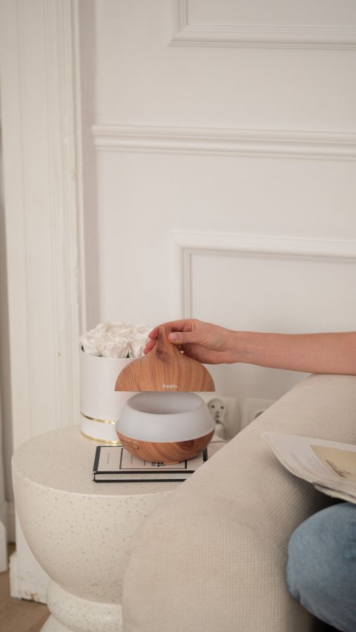 Estetyka odgrywa coraz większą rolę w aranżacji przestrzeni. Dyfuzor Feelo Family wyróżnia się eleganckim designem inspirowanym naturalnym drewnem, który harmonijnie wpisuje się w nowoczesne wnętrza.