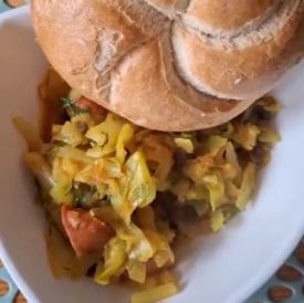 Kapusta z rodzynkami i kiełbasą – prosty obiad z charakterem
