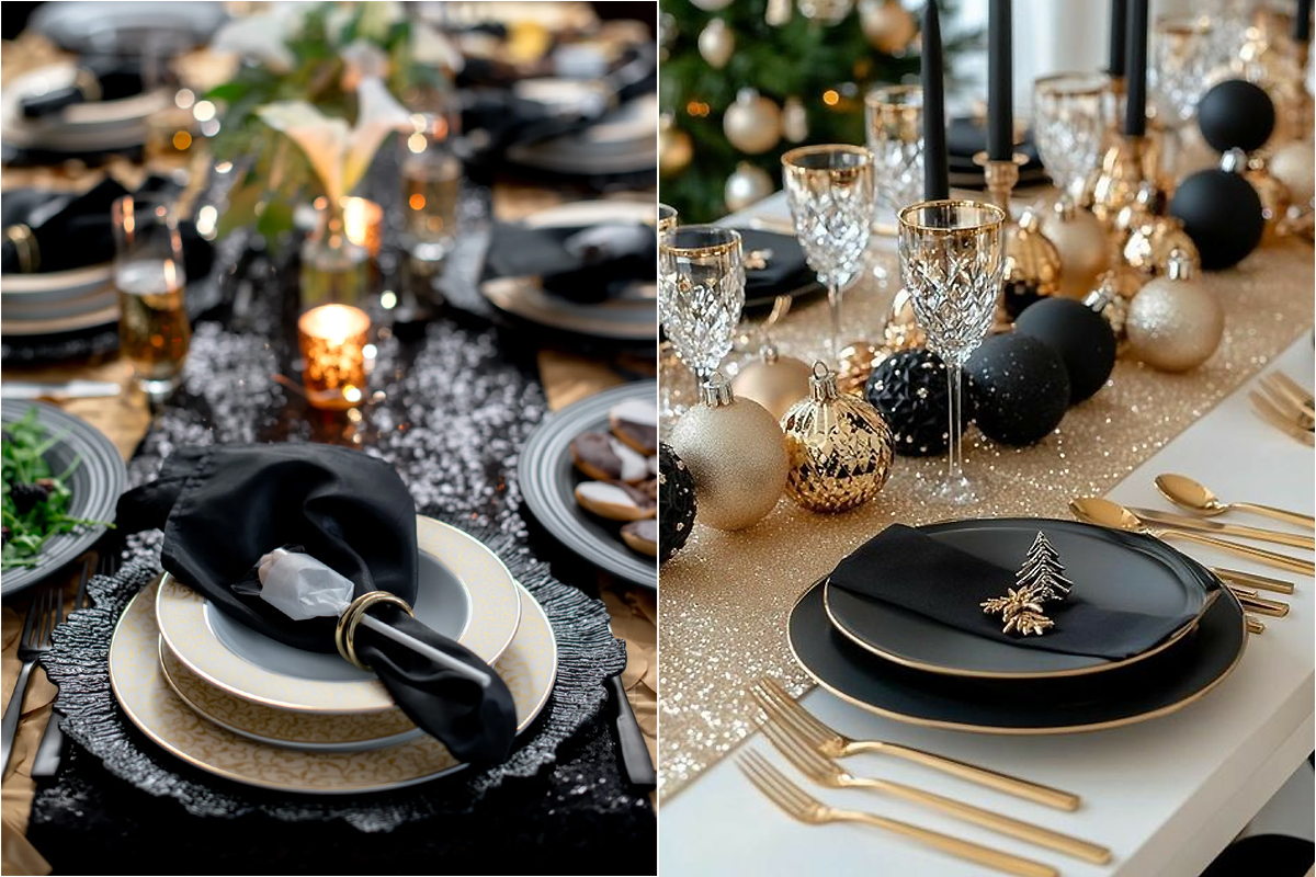 Atmosfera Black & Gold Soirée opiera się na balansie – między elegancją a swobodą, luksusem a przyjemnością bycia razem. Złoto ma podkreślać wyjątkowość chwili, a czerń wprowadzać spokój i klasę. Chcemy podkreślić, że to estetyka, która nie wymaga nadmiaru – kilka przemyślanych elementów wystarczy, by stworzyć spójną i efektowną całość. To styl, który świetnie sprawdza się zarówno w kameralnym gronie, jak i podczas większych, sylwestrowych przyjęć.