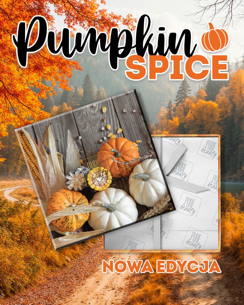 Z racji tego, że październik już się rozpoczął, dosłownie w ciągu kilku dni pojawi się kolejna nowa, standardowa edycja – na ten moment jej zawartość pozostaje tajemnicą, ale PURE BEAUTY już zdradziło nam jej nazwę oraz grafikę – PUMPKIN SPICE, bo tak brzmi jej nazwa ma być idealnym dopełnieniem jesieni, czymś, co otuli, rozpieści, a przy tym pozwoli poczuć się wyjątkowo. My już czekamy, a Wy jeśli macie ochotę (a mamy nadzieję, że tak) to śledźcie Social Media PURE BEAUTY na bieżąco, by nie przegapić startu sprzedaży.
