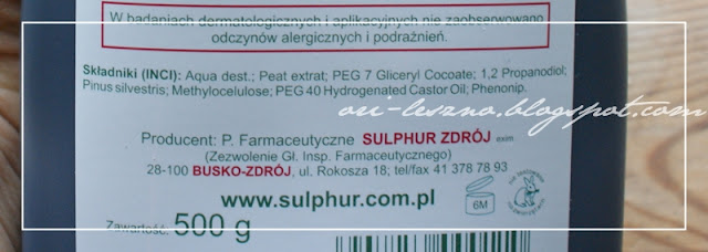 Zainteresowane osoby odsyłam na stronę producenta http://sulphur.com.pl/produkty-uzdrowiskowe/borowina-spa/opis/