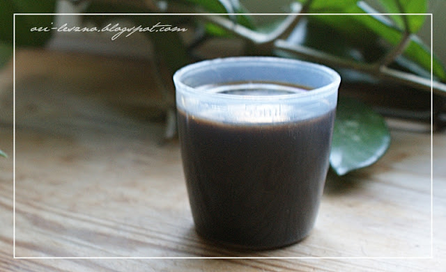 Podczas kiedy napełniam wannę ciepłą wodą, wlewam pod strumień od 50ml do 100 ml borowiny. Najczęściej aplikuję mały kieliszek czyli około 50 ml i mieszam wszystko delikatnie ręką.