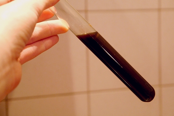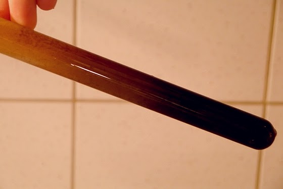Płyn ma śliską konsystencję, od razu można wywnioskować, że będzie nawilżał, a na pewno nie wysuszał. Nie pachnie dla mnie typowo borowinowo, bardziej jak las… jak mech, drzewa, liście. To taki prawdziwy, naturalny i piękny zapach lasu, idealny do wyciszenia i zrelaksowania się. Ma ciemny, bardzo ciemny kolor. Aby ukazać Wam jego barwę oraz sposób w jaki się zachowuje w wodzie, wlałam go nieco do probówki.