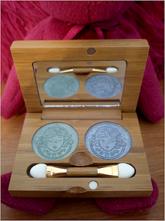Cienie przyszły w osobnych, plastikowych „ochraniaczach”, należało je umieścić w bambusowej szkatułce, w której trzymają się na magnesy. A to w małej białej kopertce to magnes do ich wyciągania. Jestem oczarowana wyglądem opakowań ! Są piękne i chociażby dla samego opakowania warto mieć jeden zestaw w swojej kosmetyczce :) Z największą starannością, wszystko dopracowane, na każdym elemencie widnieje logo firmy, do tego lusterko czyni te szkatułkę podręcznym, obowiązkowym wyposażeniem każdej kobietki. A ponadto, na naszą szkatułkę mamy także pokrowiec ! I jak tu nie być oczarowanym? :)