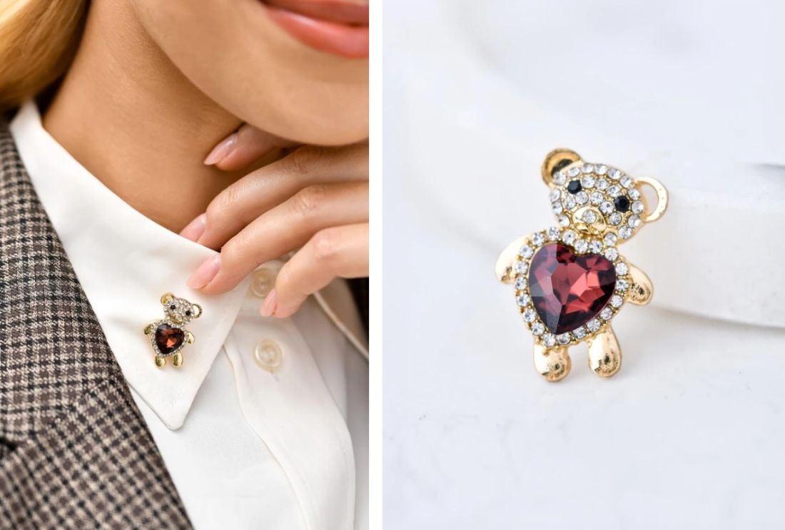 W trendach widać także fascynację estetyką retro – broszki inspirowane latami 50., 70. i 90. pojawiają się w nowej, odświeżonej wersji. Modne są modele asymetryczne, organiczne, a także broszki o nieregularnej fakturze, przypominające dzieła sztuki użytkowej. Coraz częściej broszka staje się formą manifestu – nośnikiem emocji, przekazu lub osobistej historii. W 2026 roku biżuteria nie musi być perfekcyjna ani „grzeczna”, ma być autentyczna i znacząca.