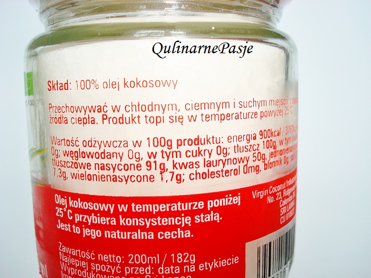 Olej kokosowy od dawna znany i bardzo ceniony, dzięki swoim walorom zdrowotnym i też kosmetycznym, wiedzieliśmy o tym, ale jeszcze nigdy nie używaliśmy go w swojej kuchni, dla tego bardzo się ucieszyliśmy, że w końcu trafił w nasze ręce.Olej Kokosowy Longevity znajduje się w szklanym słoiczku, o pojemności 200 ml, co równa się 182 gramom, zakręcanym pokrywką.