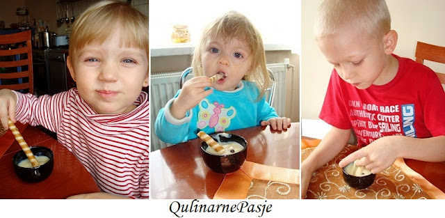 Smak deseru nie ustępuje jego aromatowi – doskonale wyczuwalny smak soi, z delikatną nutą słodyczy, zdecydowanie nowy smak dla naszych dzieci, ale, jak widać powyżej, z pewnością im smakuje, i to bardzo!