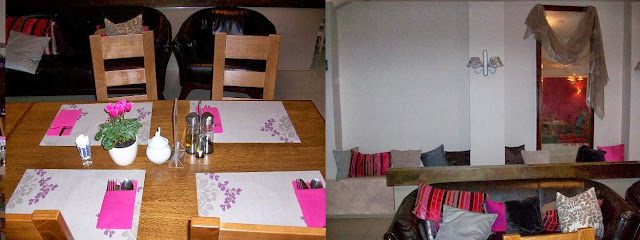 Do restauracji wybrałam się z osobą towarzyszącą – moim mężczyzną. Już na samym wejściu restauracja zrobiła na nas pozytywne wrażenie – wystrój bardzo nam się spodobał, a w szczególności mi. Cała restauracja w odcieniach różu i kremowego, łącznie z nakryciem stołu – jak dla mnie świetna kolorystyka.
