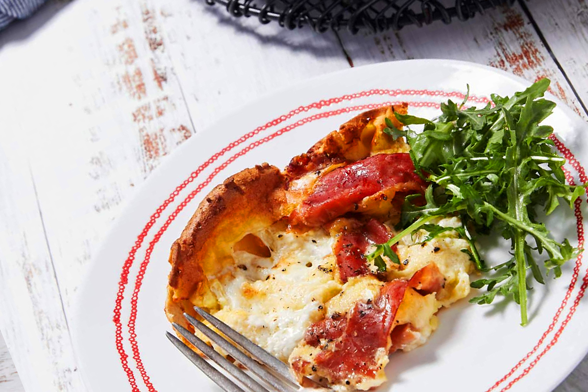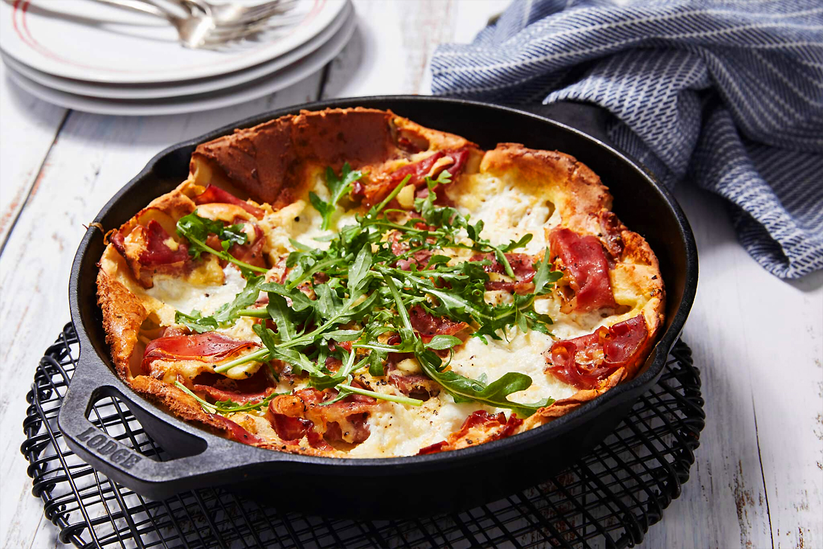 Dutch Baby z prosciutto, mozzarellą i rukolą – jesienne śniadanie w nowoczesnym stylu