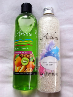 Totalnym nieporozumieniem jest dla mnie zamykanie takich perełek w najzwyklejszej plastikowej butelce z brzydką zakrętką. Myślę, że fajnie byłoby otrzymać jakiś szklany słoiczek z delikatnym ozdobnikiem na etykiecie. Rozumiem też że i cena wtedy byłaby większa, ale kosmetyk wyglądałby bardziej elegancko. Perełki po odkręceniu zakrętki bardzo silnie pachną. Jest to wspomniany aromat kaszmiru, przyjemny i miły dla zmysłów. Niestety po wrzuceniu umilacza do wanny czar pryska i z zapachu pozostaje tylko wspomnienie. Małe kuleczki rozpuszczają się jednak fantastycznie i za to też je lubię. Nic nie wala mi się po dnie wanny czego po prostu nie toleruję. Pozostawiają delikatnie migoczącą poświatę na skórze, nie podrażniły mnie, ani też nie wysuszyły na wiór. Nie twierdzę jednak, że w jakimś stopniu uelastyczniły naskórek, czy nadały sprężystości. Perełki traktuje tylko i wyłącznie jako przyjemny dodatek do kąpieli bez oczekiwania efektu „wow”. Kosztują wprawdzie niewiele, ale wydajność to rzecz gustu. Wszystko zależy od tego ile tych kuleczek wrzucimy do wody. A teraz żelik…