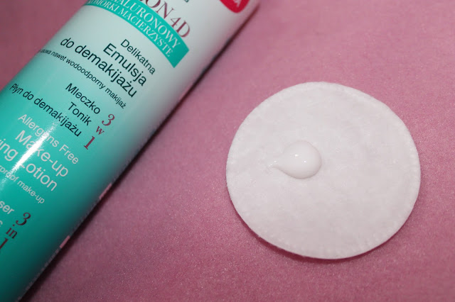 Jest to produkt 3 w 1 – mleczko tonik i płyn do demakijażu. Chodź w konsystencji przypomina tradycyjne mleczko do twarzy to zdecydowanie lepiej wchłania się w wacik i dobrze rozprowadza się po twarzy. Ja nie lubię mleczek, ale formuła tej emulsji przypadła mi do gustu. Dużym plusem tego produktu i jest to, że radzi sobie również z makijażem oka. Bez problemu usuwa tusz nawet wodoodporny i nie podrażnia przy tym oczu. Świetnie sprawdza się również u osób, które mają wrażliwą skórę lub mają problemy np. z trądzikiem. Emulsja jest bez alergenów. Jest delikatna i ma bardzo przyjemny zapach.Producent zapewnia również, że produkt ten redukuje ilość, długość, szerokość i głębokość zmarszczek. Tego zdecydowanie nie mogę ocenić, ponieważ u mnie raczej nie ma co jeszcze redukować:P