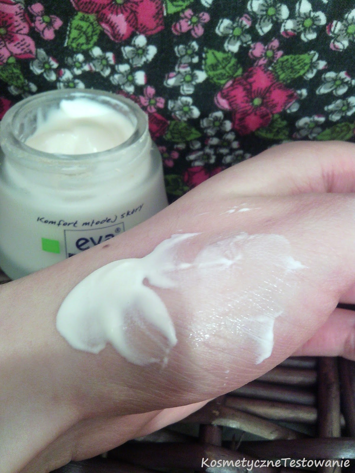 Dzisiaj komfort młodej ( jeszcze…) skóry. Mam cerę mieszaną, tłustą w strefie T i wysuszoną na policzkach. Niestety prawie wszystko mnie zapycha. Pod wpływem pozytywnych opinii o firmie Pollena-Ewa skusił mnie ten krem. ( nie ukrywam, że skusiła mnie również jego cena promocyjna… 6 złotych)