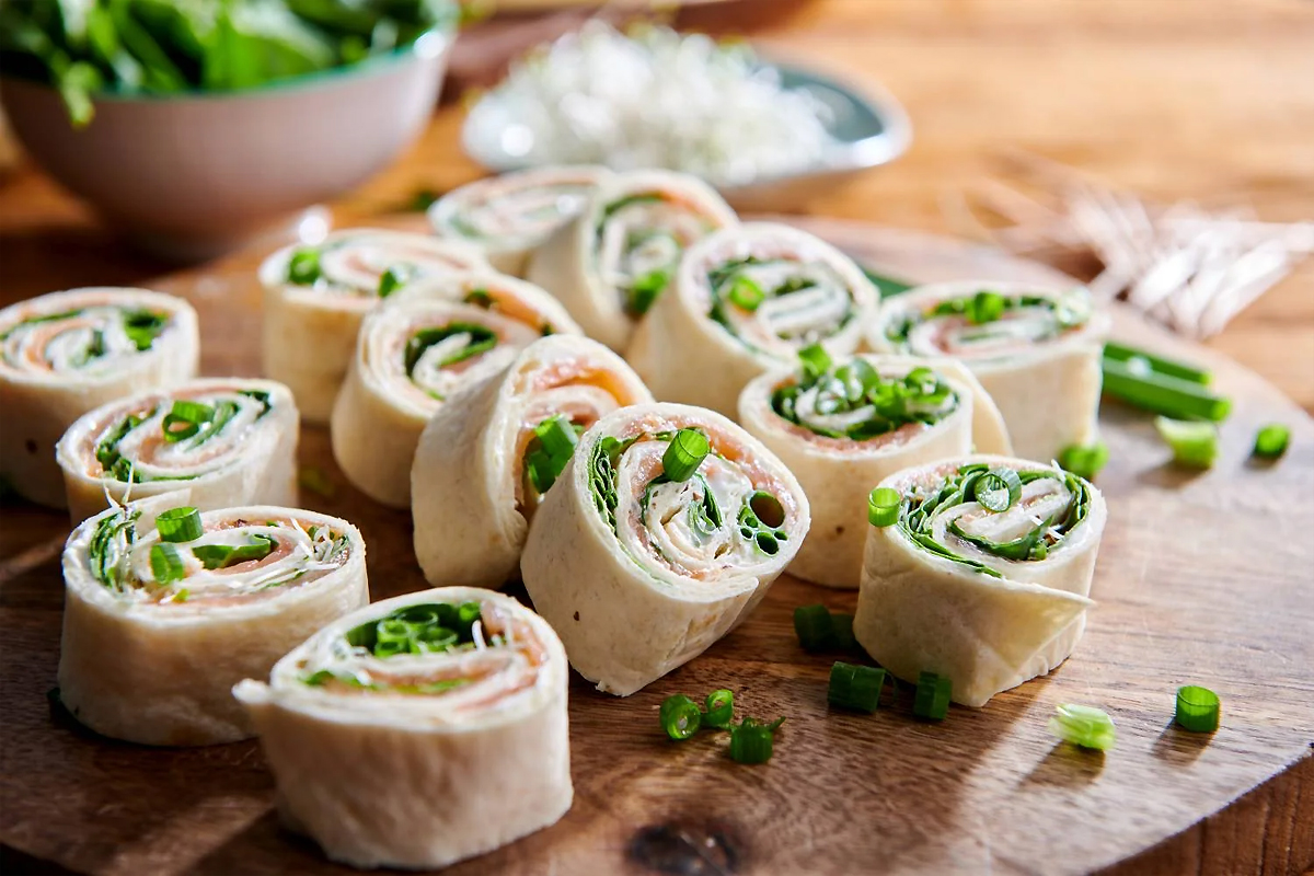 Mini roladki z tortilli z serkiem i łososiem