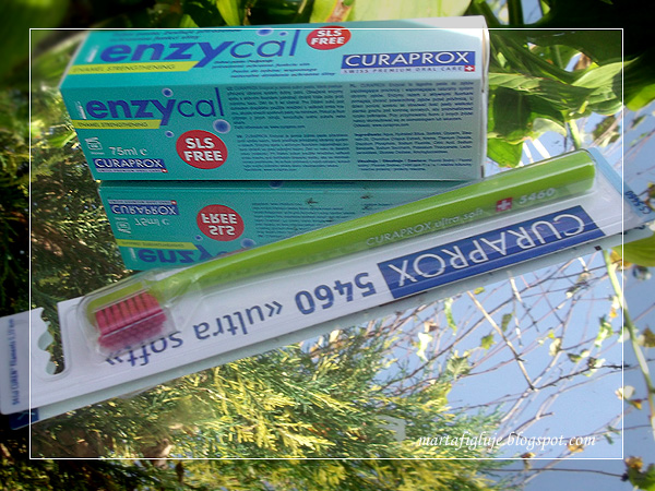 Ostatnio udało mi się jednak poznać szwajcarską markę profesjonalnych produktów stomatologicznych CURAPROX. I o nich chcę Wam dzisiaj troszkę opowiedzieć, tym bardziej, że jest to marka bardzo dobra i dostępna w sprzedaży. Od przedstawicieli marki otrzymałam niebanalny zestaw produktów, w którym znalazły się: pasta do zębów Enzycal, szczoteczki klasyczne: Curaprox 5460 ultra soft, Curaprox ATA, szczoteczka jednopęczkowa Curaprox 1006 single, zestaw uchwytów (szczoteczek) międzyzębowych wraz z barwnie kalibrowaną sondą IAP oraz zestaw skrobaczek do języka. Jak widzicie zestaw profesjonalny, a do tego niezwykle bogaty i ciekawy, zawierający produkty mniej popularne, a jakże ważne w codziennej profilaktyce.