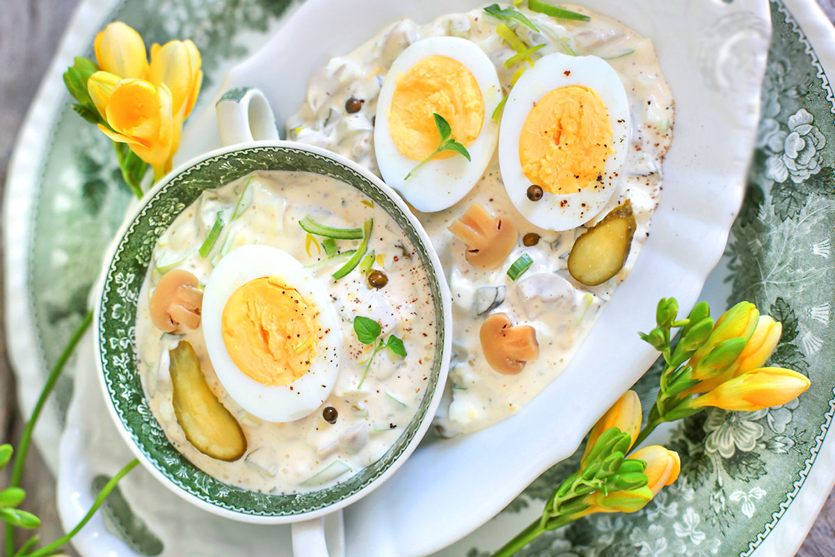 Dobry sos do jajek powinien przede wszystkim równoważyć ich delikatność. Kremowa konsystencja świetnie współgra z ich strukturą, dlatego tak często sięgamy po majonez lub jogurt jako bazę. To one nadają aksamitność i sprawiają, że całość jest bardziej spójna. Kluczową rolę odgrywa także kontrast smaków. Jajka lubią dodatki lekko kwaśne, pikantne lub ziołowe – dzięki nim stają się bardziej wyraziste. Chrzan, musztarda, czosnek czy kiszone ogórki to składniki, które od lat sprawdzają się w tej roli.
