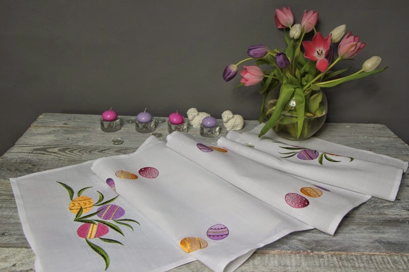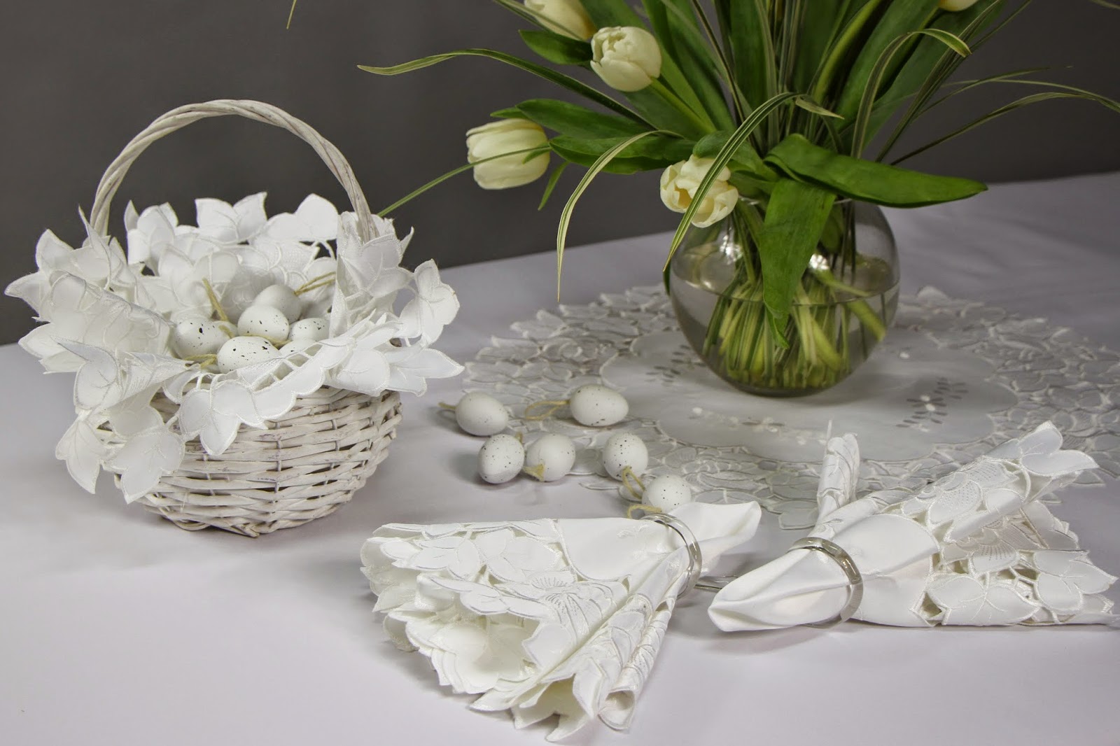 podkreśliłam w inspiracji zestaw kolorów z serwetki biel, zieleń i fiolet wykorzystując m.in kolory tulipanów, świeczek, koszyczka oraz porcelanowego serwetnika: