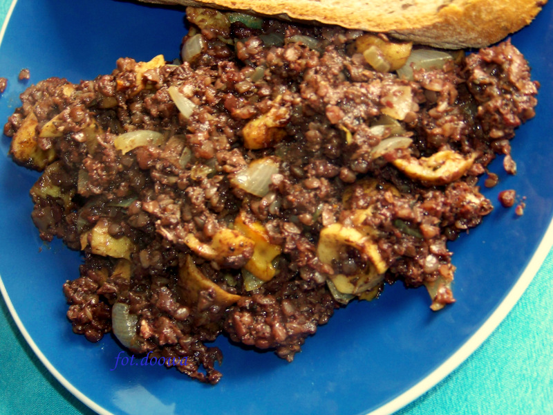 Kaszanka z cebulką i piaskowcem modrzakiem.
