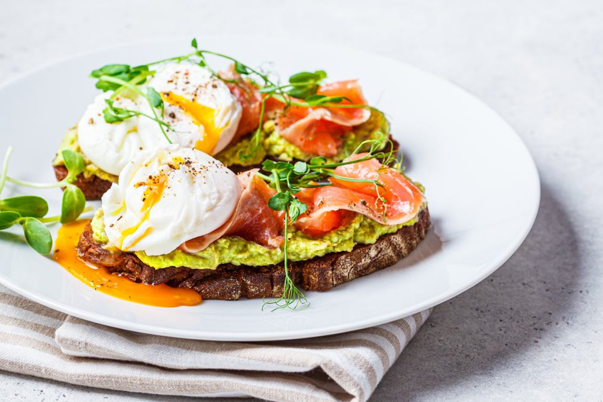 Grzanki z łososiem i jajkiem w koszulce