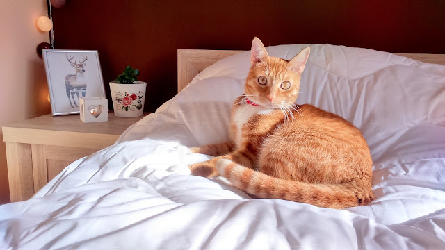Początkowo opinią o Malmö Cotton mieli się z Wami podzielić Państwo Myszy, jednak najlepszą recenzję produktu wystawił rudy Tygrysek. Kto mieszka z kotem ten wie, że zwierzęta te należą do rodu arystokratycznego, który w byle pościeli szlacheckiego zadka grzać nie będą. Tygrysek jest samozwańczym panem mysiego mieszkania. Nocą śpi wyłącznie na futrzanych poduszkach Panny Mysi, za dnia – pod lekką narzutą sypialnianego łoża. Kiedy Panna Mysia rozpakowała kołdrę Malmö Cotton Pan Tygrysek oszalał ze szczęścia… i nie było mowy o sesji fotograficznej bez udziału mruczącego z radości Tygryska.