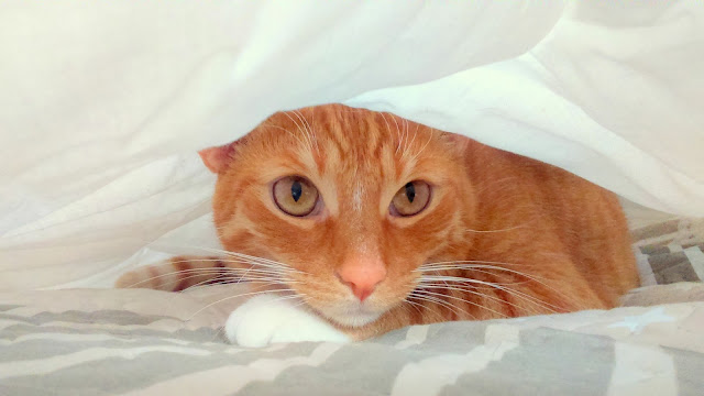 Przyjemnie miękki, lekki jak chmurka i delikatnie szeleszczący materiał skradł tygrysie serce. Rudy Arystokrata uwił sobie pod milutkim materiałem przytulną norkę i nie wyściubił z niej nosa przez cały dzień.