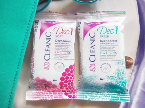 - Dezodorant w chusteczce Cleanic DEO Soft oraz orzeźwiający Cleanic DEO Fresh