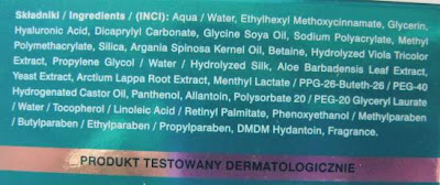 Co do działania kremu to pomimo obietnic producenta nie matuje i nie daje efektu chłodzenia. Jednak dla mnie jest to plusem, bo nie wysusza, idealnie nadaje się pod podkład i nie czuć mentolu. Szybko się wchłania i nie pozostawia żadnej warstwy na buźce, dzięki temu nie roluje się. Mazidełko nawilża skórę i nie zapycha jej.  Dodatkowo krem bardzo ładnie pachnie i codzienne jego stosowanie staje się przyjemnością. Użytkuję go tylko na dzień, bo na noc mam swojego agenta do zadań specjalnych.