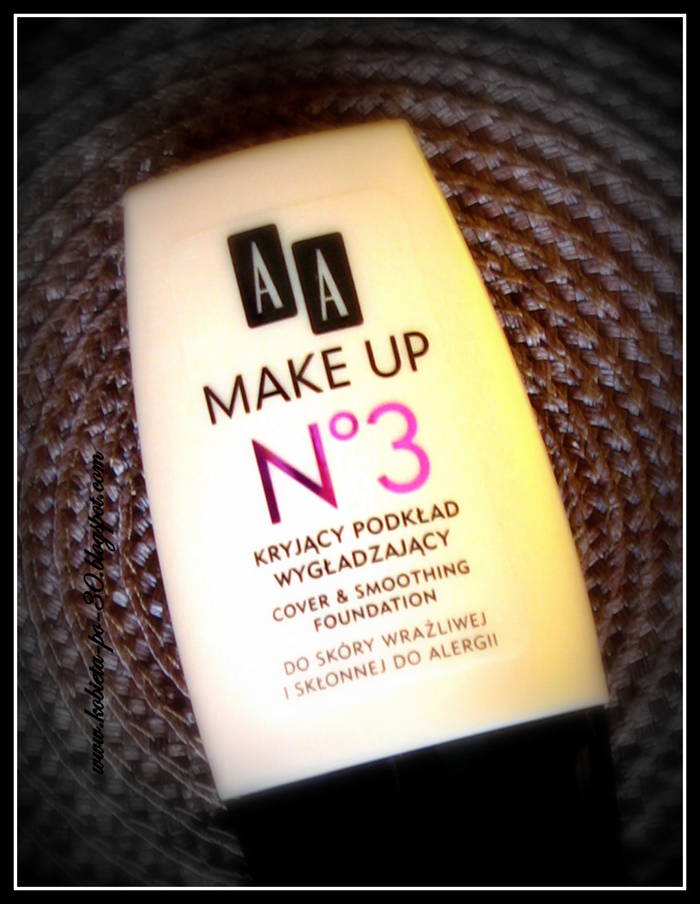 Firma AA wypuściła na rynek kosmetyczny matujący podkład kryjący do skóry wrażliwej i skłonnej do alergii. Beztłuszczowa formuła emulsji ma nam umożliwić łatwą aplikacje i długotrwały efekt matowienia. Podkład również ma za zadanie doskonale maskować niedoskonałość i zaczerwienienia, wyrównać koloryt skóry i nadać jej aksamitnej gładkości. Został przetestowany dermatologicznie na osobach z alergicznymi chorobami skóry. Dzięki zawartości witaminy A, E, C oraz kwasu hialuronowego, odżywi i nawilży skórę. Producent również wspomina, iż produkt nie zatyka porów, jest odporny na wodę i pot. Zawiera filtr UV SPF 6, posiada PH neutralne dla skóry.Jest to małe, smukłe, skromne pudełeczko z bardzo ładną i przejrzystą szatą graficzną. Lecz gdy teraz patrzę na nie, stojące dumnie na mojej szafce, prezentuje się dość ekskluzywnie. Uważam za jego dużą zaletę możliwość postawienia go na zakrętce. Dzięki dobrej stabilności wieczka, całość kosmetyku spływa wprost do aplikatora, więc podkład nie będzie się marnował wysychając na ściankach pudełeczka. Niewielką wadą takiego opakowanie, może być problem z dozowaniem odpowiedniej ilości produktu, lecz z czasem nauczymy się jak mocno nacisnąć pudełeczko aby otrzymać pożądaną dawkę fluidu.