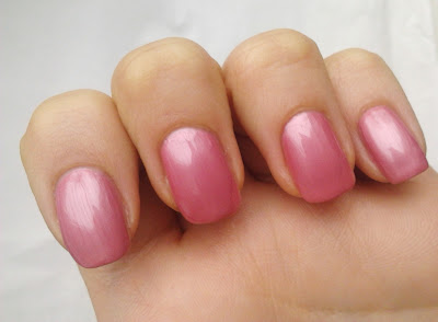 Krycie zapewniają 3 warstwy, jednak należy malować uważnie, aby nie było widać pociągnięć pędzelka. Zależnie od humorów moich dłoni utrzymuje się 2 do 3 dni bez bazy i topu. Wysychanie także w porządku, jak w przypadku zielonego brata. Nosiłam go kilka razy, jednak to zdecydowanie nie mój kolor. Zbyt księżniczkowy. :P