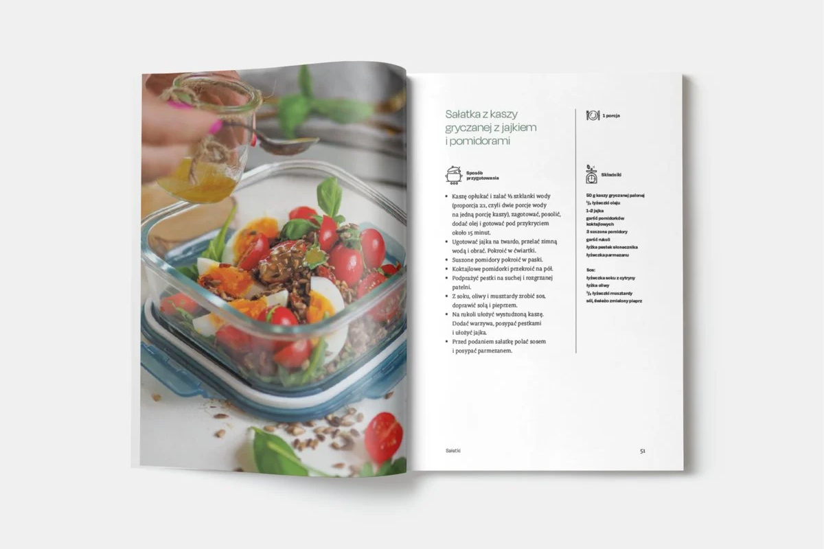 W książce znajdziemy praktyczne strategie przygotowywania składników z wyprzedzeniem – od gotowania kasz po marynowanie warzyw. Autorki proponują także triki ułatwiające szybkie pakowanie rano, dzięki którym lunch przestaje być dodatkowym obowiązkiem. Znajdziemy tu pomysły na śniadaniowo-lunchowe combo, które sprawdza się przy intensywnym dniu pracy. Przepisy są proste, oparte na sezonowych składnikach i łatwe do modyfikacji według preferencji smakowych. Wśród propozycji nie brakuje także opcji wegetariańskich i bezglutenowych, co ułatwia adaptację do różnych potrzeb.