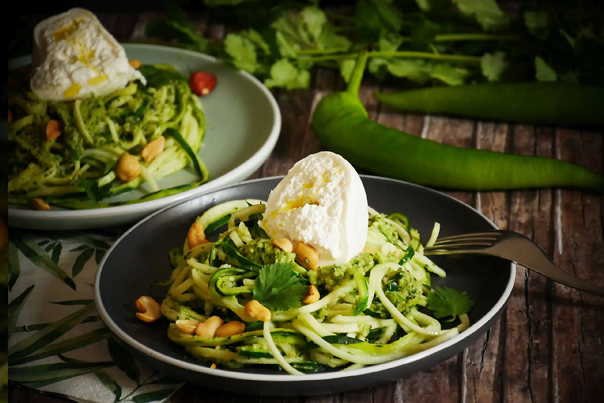 Makaron z pesto z cukinii i burratą – idealny wiosenny obiad