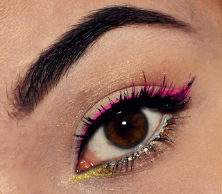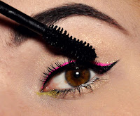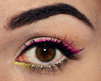 7. Przytnij pasek sztucznych rzęs do połowy, a ich końcówki pokryj różowym cieniem z płynem Duraline. Przyklej rzęsy w zewnętrznym kąciku oka (klej DUO).