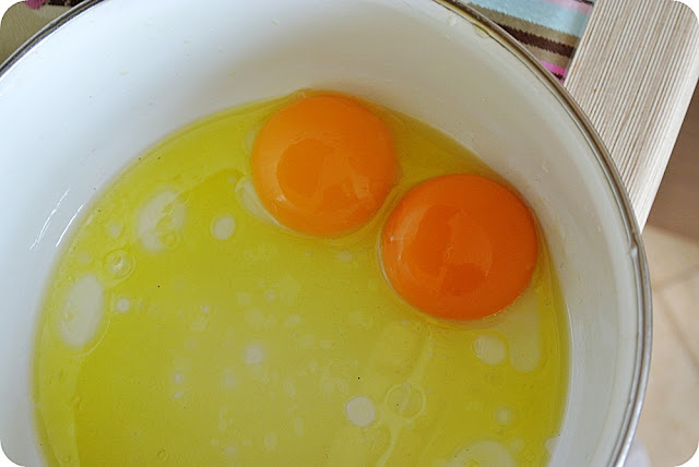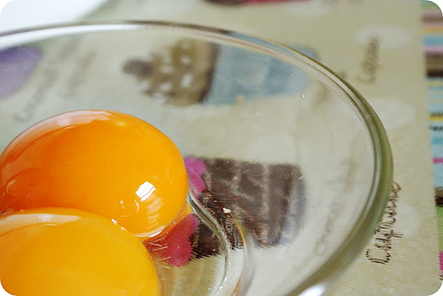 Następnie do naszej miseczki dodajemy kolejne składniki czyli żółtka …