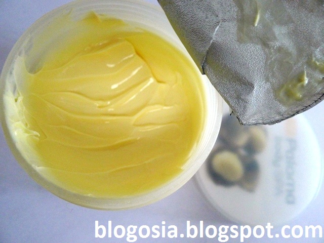 Masło znajduje się w wygodnym i niesamowicie przyjemnym dla oka opakowaniu. Pod względem estetycznym jak i praktycznym daję szóstkę z plusem! Zapach masła jest intensywny i na tyle oryginalny, że nie umiem go do niczego porównać. Na początku byłam nim trochę rozczarowana, bo należy on raczej do grupy chemicznych zapachów, jednak z czasem się przyzwyczaiłam. Nie jest mdły ani zbyt słodki. Na ciele utrzymuje się długo i przechodzi nawet na ubrania. Konsystencja masła jest zbita, gęsta, ale łatwo się ją nabiera. Na ciele rozprowadza się gładko i szybko.