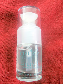 Bazy nie znałam i nie stosowałam nigdy przedtem. Może to dlatego, że nie miałam wcześniej jakichś drastycznych problemów ze świeceniem się buźki. Teraz mimo upływu lat jest gorzej… W związku z tym ucieszyłam się z możliwości wypróbowania nowego kosmetyku. O dostarczenie tego egzemplarza zadbała pani Grażyna z firmy Mariza.