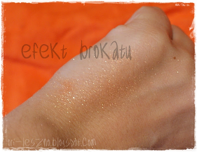Mimo to, puder mnie zaskoczył, idealnie nadaje się do podkreślenia kości policzkowych. Rewelacyjnie sprawdza się w przypadku wyjścia na imprezę, kiedy to światło przekłamuje kolory. Drobinki nie mienią się mocno, moim zdaniem nie są w ogóle nachalne, ani tandetne. Poza tym, nie mogę narzekać, na pewno przyda mi się latem, kiedy będę bardziej opalona.