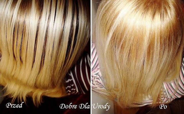 Tu moje włosy przed koloryzacja i po koloryzacji, jak widzicie odrosty strasznie ciemne, farba bardzo mocno zadziałała. Nakładałam ją na nieumyte, tłuste włosy. Tuż po koloryzacji włosy mają bardziej intensywny odcień, jak to zawsze bywa, natomiast po dwóch, trzech myciach kolor staje się bardziej stonowany, takie włosy lubię najbardziej. Kolorek Karmelowy blond spodobał mi się i to bardzo!