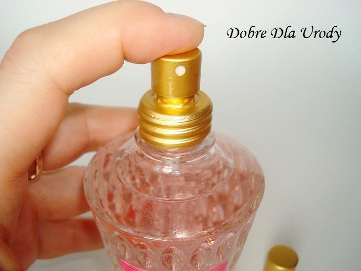 Aplikacja jest równie wygodna jak i mega przyjemna, atomizer bardzo dobrze rozpyla perfumy, delikatną mgiełką układają się na skórze, zapewniając natychmiastową poprawę humoru!