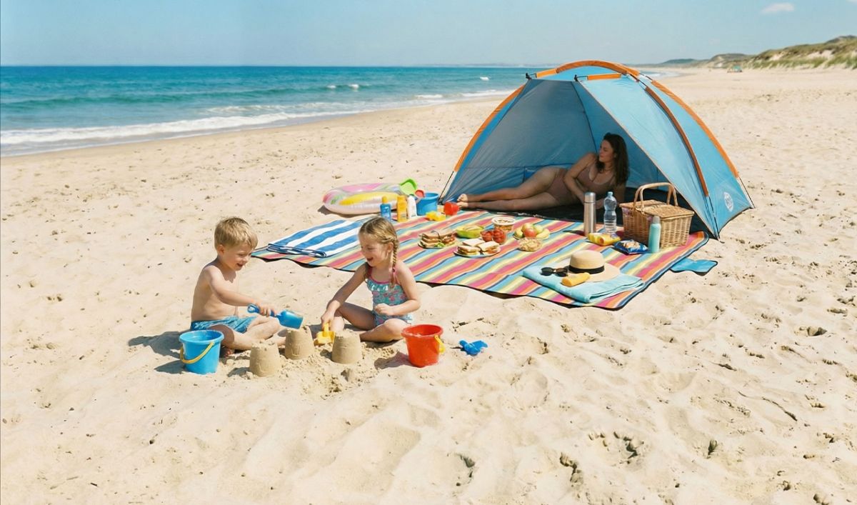 Namioty na plażę pod wiatr i słońce: jak ustawić bazę, żeby cień był tam, gdzie trzeba