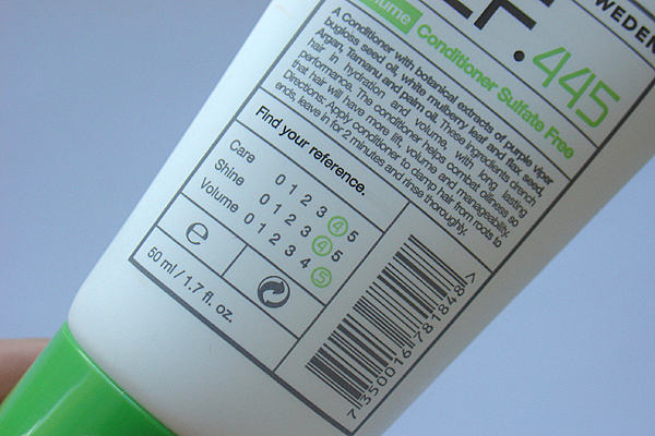 Na opakowaniu w ciekawy zawarta została informacja w jakim stopniu odżywka działa na włosy pod określonymi aspektami. W przypadku mojej odżywianie jest na poziomie 4, blask także 4, a objętość 5.