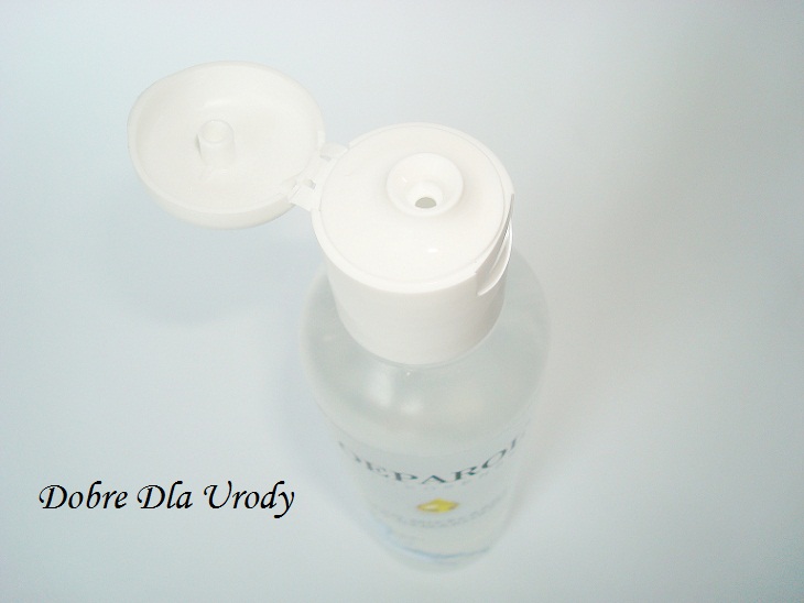 Opakowanie – Płyn micelarny zamknięty w smukłej, przezroczystej buteleczce o pojemności 200ml, wykonanej z półmiękkiego tworzywa, z białym korkiem, który z łatwością otwiera się, a jednocześnie solidnie zamyka, co uniemożliwia wydostanie się, wylania płynu. Przezroczyste opakowanie umożliwia śledzenie zużycia kosmetyku.