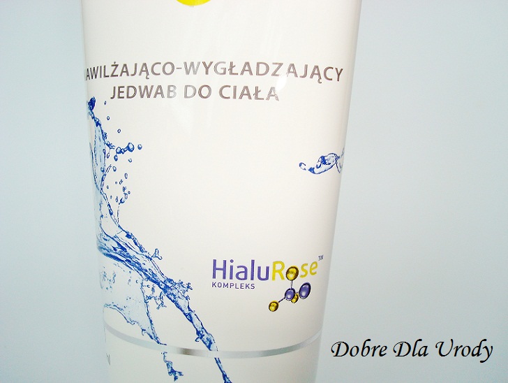 Działanie: Balsam intensywnie nawilża skórę dzięki zawartości kompleksu HialuRoseTM, unikalnemu połączeniu kwasu hialuronowego i oleju z wiesiołka (ang. evening primrose oil), bogatego w kwasy omega – 6. Kwas hialuronowy w połączeniu z kwasami omega-6 odbudowuje barierę hydrolipidową skóry i zatrzymuje wodę w głębszych warstwach naskórka. Masło Shea regeneruje przesuszoną skórę, przywracając jej gładkość i elastyczność. Dodatkowo, zawarte w balsamie proteiny z jedwabiu nadają skórze niezwykłą miękkość i aksamitność.