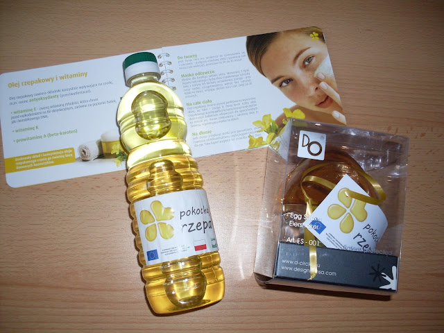 Dziś połączę kulinaria z pielęgnacją twarzy i ciała. Od portalu Uroda i Zdrowie otrzymałam do testów buteleczkę oleju rzepakowego w ramach akcji Pokochaj Olej Rzepakowy. W skład przesyłki wchodził także shaker w kształcie jajka oraz mini książeczka z kilkoma przepisami na wykorzystanie oleju rzepakowego, ale także jego właściwości dla organizmu i urody.