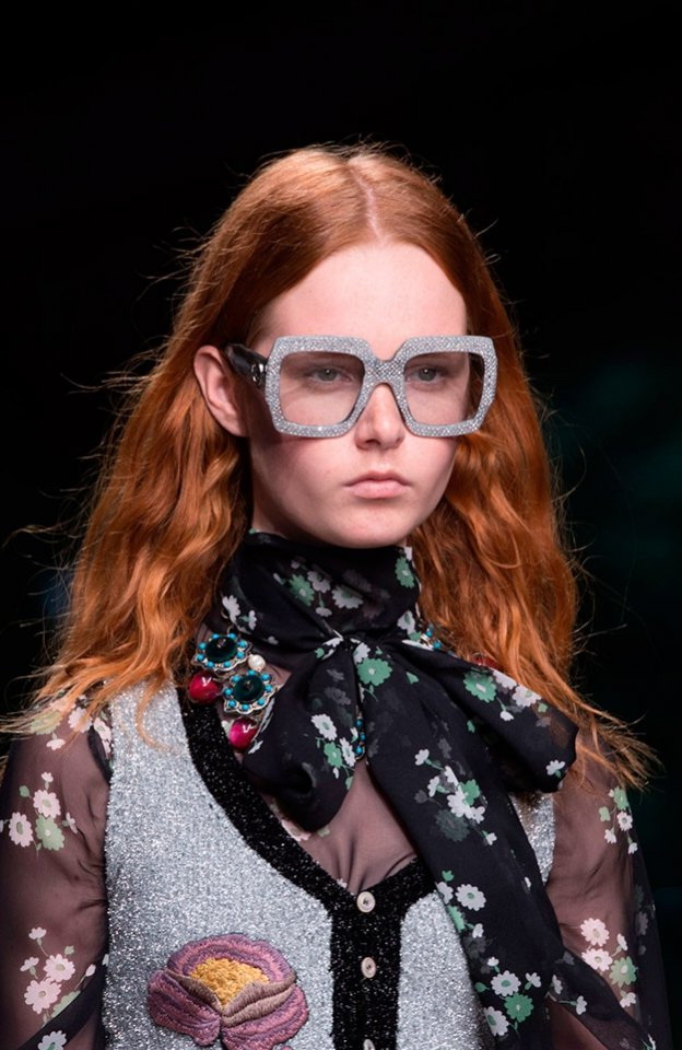 1. Pierwsza propozycja, to geometrycznie asymetryczne oprawki, których kształt trudno jednoznacznie określić i nazwać. W zależności od upodobań, można wybrać odpowiadającą wersję kolorystyczną. Propozycja od Gucciego występuje w tonacji brązowej. Ciekawym rozwiązaniem klasyczne oprawki dwukolorowe, które posiadają zawiasy FLEX, które pozwalają na odgięcie zausznika poza linię okularów, co ułatwia zakładanie okularów i zapewnia ich bezuciskowe noszenie, niwelując przy tym ryzyko ewentualnych odkształceń.