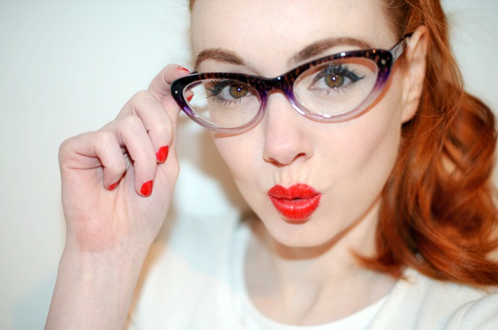 2. Kolejna z propozycji, to tak zwane kocie oczy. Oprawki są wyraźnie uniesione do góry, nawet w delikatnej, jasnej kolorystyce wyglądają drapieżnie. Żywe barwy takie, jak np. czerwień tylko wzmocnią ten efekt. Odsłona dla kobiet odważnych, chcących wyróżnić się z tłumu.
