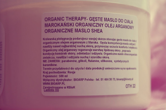 Dziś będzie recenzja masła do ciała Organic Therapy, które można kupić w sklepie www.bioarp.pl.