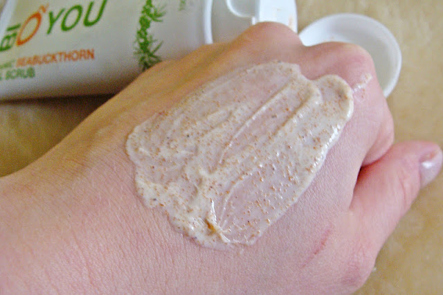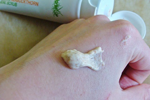 Zapach – Ciężko określić… Scrub ma bardzo specyficzny zapach, który nie wszystkim będzie odpowiadał, ale mnie osobiście wcale nie przeszkadza. Nie wiem jak go zdefiniować, może to zapach rokitnika, troszkę apteczny, ale w żadnym razie nie chemiczny.